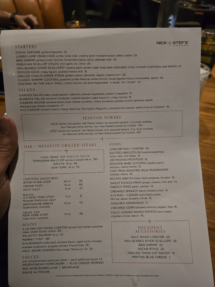 But it’s not just about the steak! The N & S Crab Cake is a chef favorite that has been highlighted by many, including Notoriously Nikki, whose review revealed how the perfectly seasoned jumbo Maryland lump crab cake can stand out on its own. Pair your meal with delectable sides like potatoes au gratin or creamed spinach for a true gourmet experience.